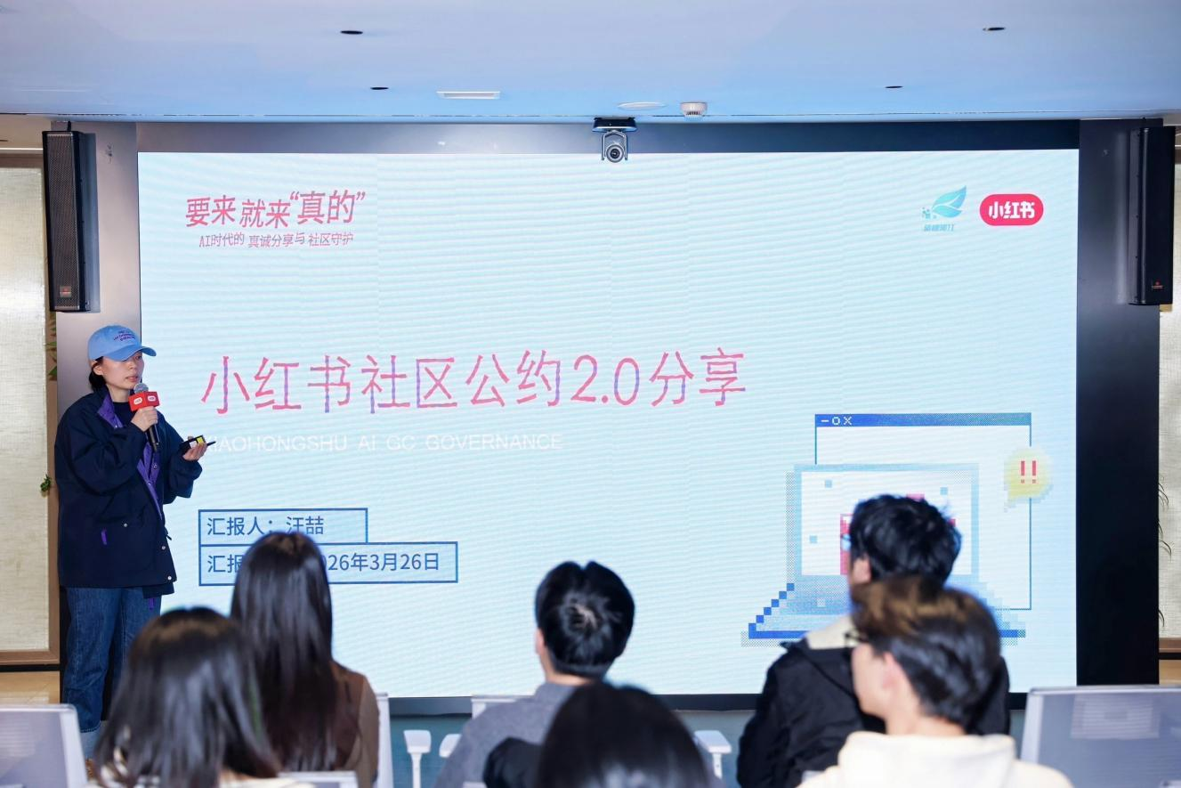 3月26日,小红书在上海举办“要来就来‘真的’——AI时代的真诚分享与社区守护”开放日活动。作为“清朗浦江·2026”网络生态治理旬开放日的重要活动之一,本次活动围绕《小红书社区公约2.0》与AIGC(人工智能生成内容)治理展开,通过现场互动、主题分享和交流讨论等形式,回应AI时代内容真实性、创作者责任和平台治理边界等现实议题,进一步凝聚平台、机构、创作者等多方共同守护真实社区生态的共识。