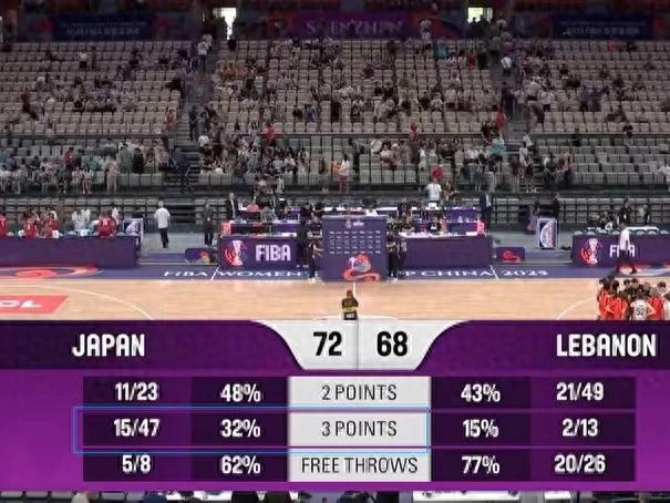 在黎巴嫩的身体冲击下,日本女篮擅长的3分球仅有47投15中!